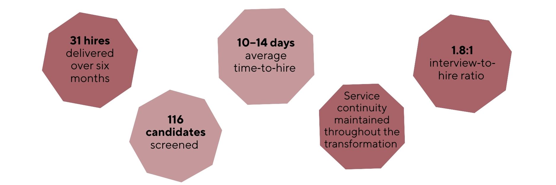 The approach provided end‑to‑end recruitment ownership while remaining closely integrated with the client’s teams.